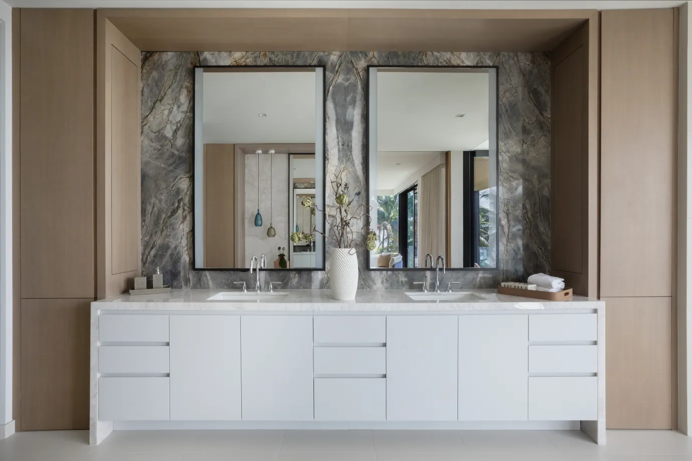 Given its prime location in Hillsboro Mile, we wanted the interiors to reflect the beauty of the surroundings. From the moment you walk in and catch the scent of the ocean, you know you’re somewhere special. The design embraced a warm, clean, and contemporary style, blending classic modern elements with a coastal twist to create an atmosphere that feels both sophisticated and effortlessly inviting.