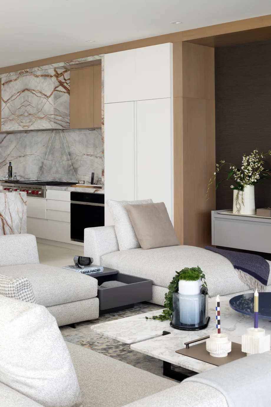 Every finish, detail, and feature was intentionally selected to make the oceanfront home feel welcoming and personal from the moment a prospective buyer stepped inside. We focused on incorporating elegant, warm materials throughout the 12,000-sq.-ft. space, adding subtle touches that spark a sense of connection and comfort.