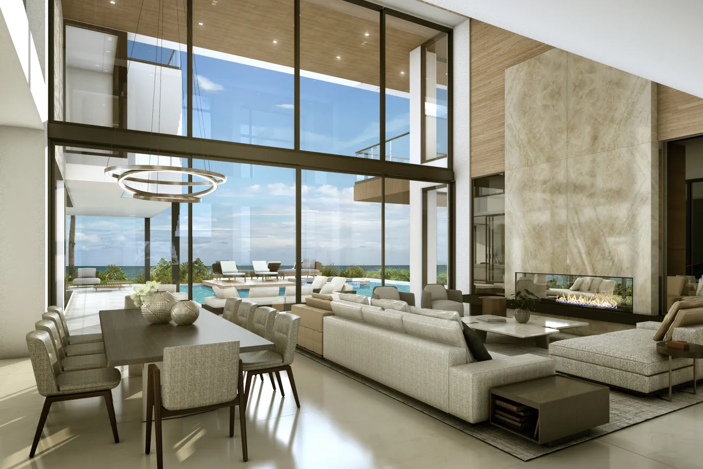 The design team achieved this by crafting an interior design plan that seamlessly blends both timeless aesthetics and contemporary features. By embracing the home’s natural surroundings, our residential designers in Hillsboro Beach created a strong indoor-outdoor connection, allowing the oceanfront setting to shine throughout the interiors.