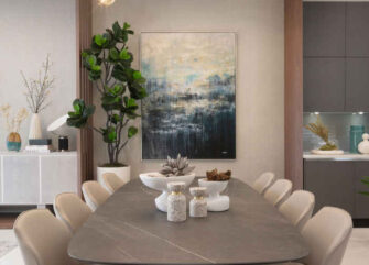 A 3,500-square-foot blank canvas awaited our design team when we stepped into this condo in the Sayan Condominium complex in Sunny Isles. We formed a partnership with our clients and learned they desired simple, coastal modern style for their Miami home, which our design team was all too happy to execute. Our sophisticated interior design concept included a color scheme of vibrant palm tree greens and sparkling aqua blues popping against the vanilla-hue of sandy beaches, natural materials, and a relaxing mood. For this young family from New York, this home had to embody the phrase “sophisticated getaway,” and fit their needs and lifestyle.