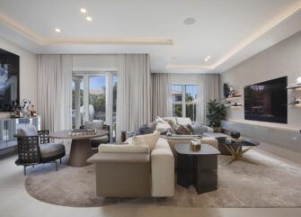 In this sophisticated interior design project, we provided design development and interior design services. Choosing the color palette, furnishings, accessories, and lighting for all rooms of the home, from a nursery and the master bedroom to the kitchen and each one of the four bathrooms.